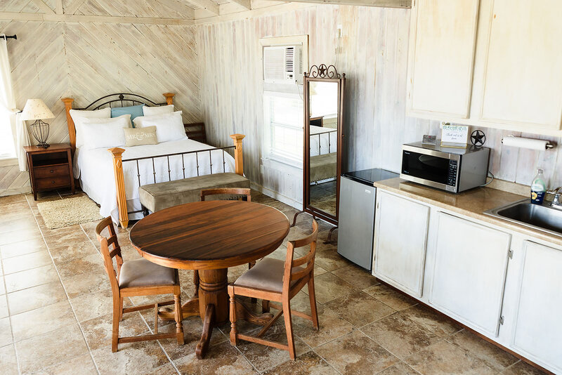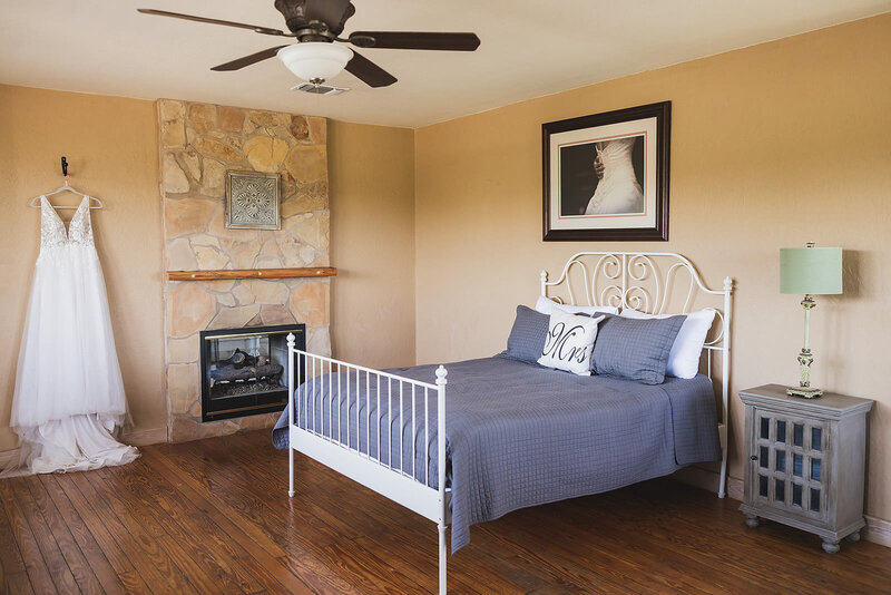 The bridal suite in the Main Lodge overlooks the pool, ceremony site, and Hill Country. It sleeps four, with two rooms and two bathrooms. The honeymoon suite, a private cottage by the pool, has a kitchenette. The grooms suite, in a private wing, sleeps two and has a bathroom, wet bar, and foosball table.